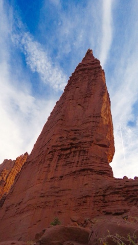 What was not to love here, we had pinnacles, spires, towers, blue sky, clouds, some hiking, scrambling, route finding, a ladder, a natural bridge! We had it all. We worked our way in behind the Fisher Towers....