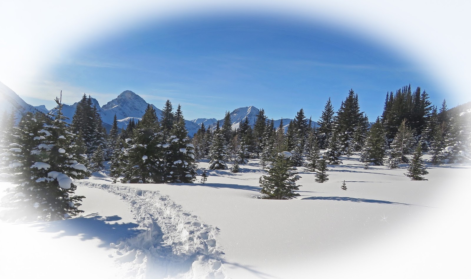 We aimed back for the bridge over the Spray River, veered sharply left after the bridge, then took turns breaking trail through very very deep unsupportive snow. Our pace doing this was very slow and it did not help that we were presented with delicious views again, that always slows us down.