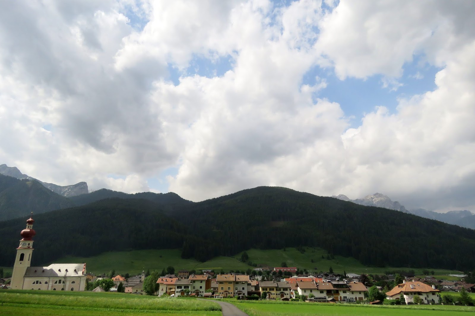The streets are winding and narrow and the walkways are of cobblestone. A river runs through it which is fast and furious right now. The "Tour Italy" cycling race came through Villabassa a couple of weeks ago and I thought that must have been a fast and furious thing too.