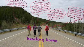 We completed the last few kilometres then popped out onto Route 66 beyond the closed gate. Some went left and some went right. Those of us aiming right headed off to Beaver Lodge for a potluck buffet style dinner. It was a short hike along-side the beaver ponds. It was so scenic, we took time to give this area the credit it as due.